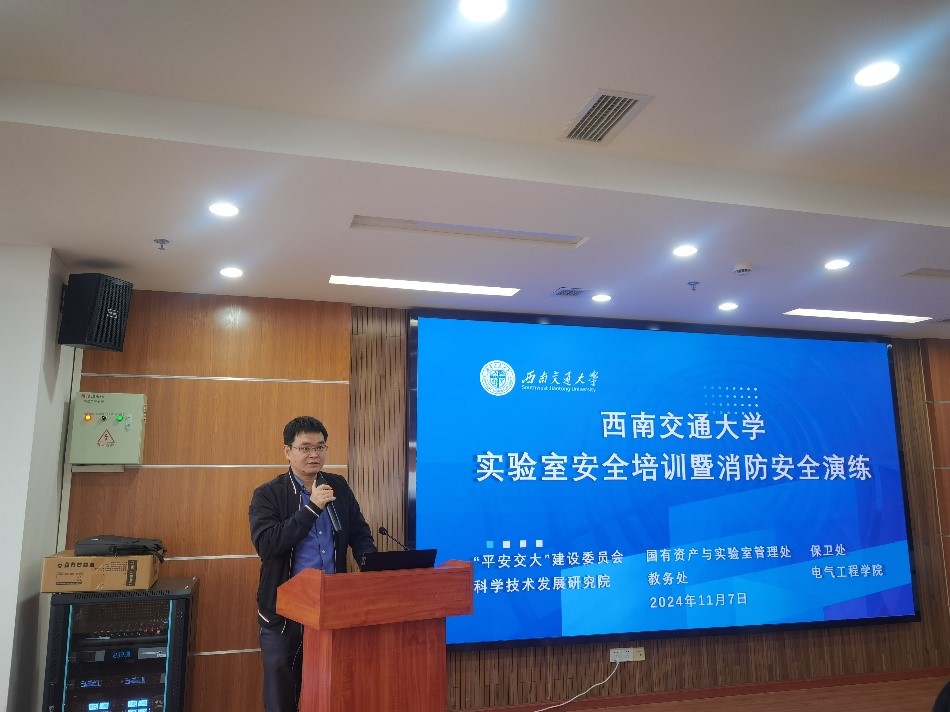 在第33个全国消防日来临之际,为进一步增强师生的实验室安全意识和应急处置能力,构建平安校园,11月7日下午,由校长办公室、国有资产与实验室管理处、保卫处、科学技术发展研究院、教务处联合主办,电气工程学院承办的实验室安全培训暨应急演练在犀浦校区电气馆成功举行。