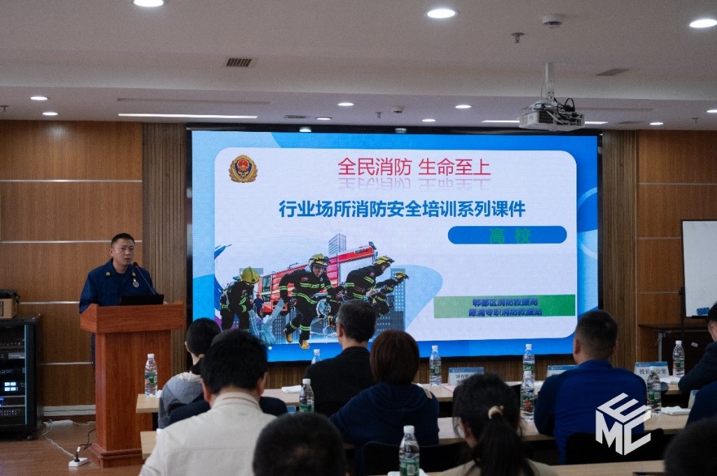郫都区犀浦消防中队邢忠琳指导员从校园消防安全形势分析、消防安全职责及责任追究、常见隐患问题及整治措施、初期火灾扑救和应急能力建设四个方面展开讲解。他结合自己的丰富经验,分享了众多案例和实践操作,增强了师生的消防安全意识和应急处置能力。