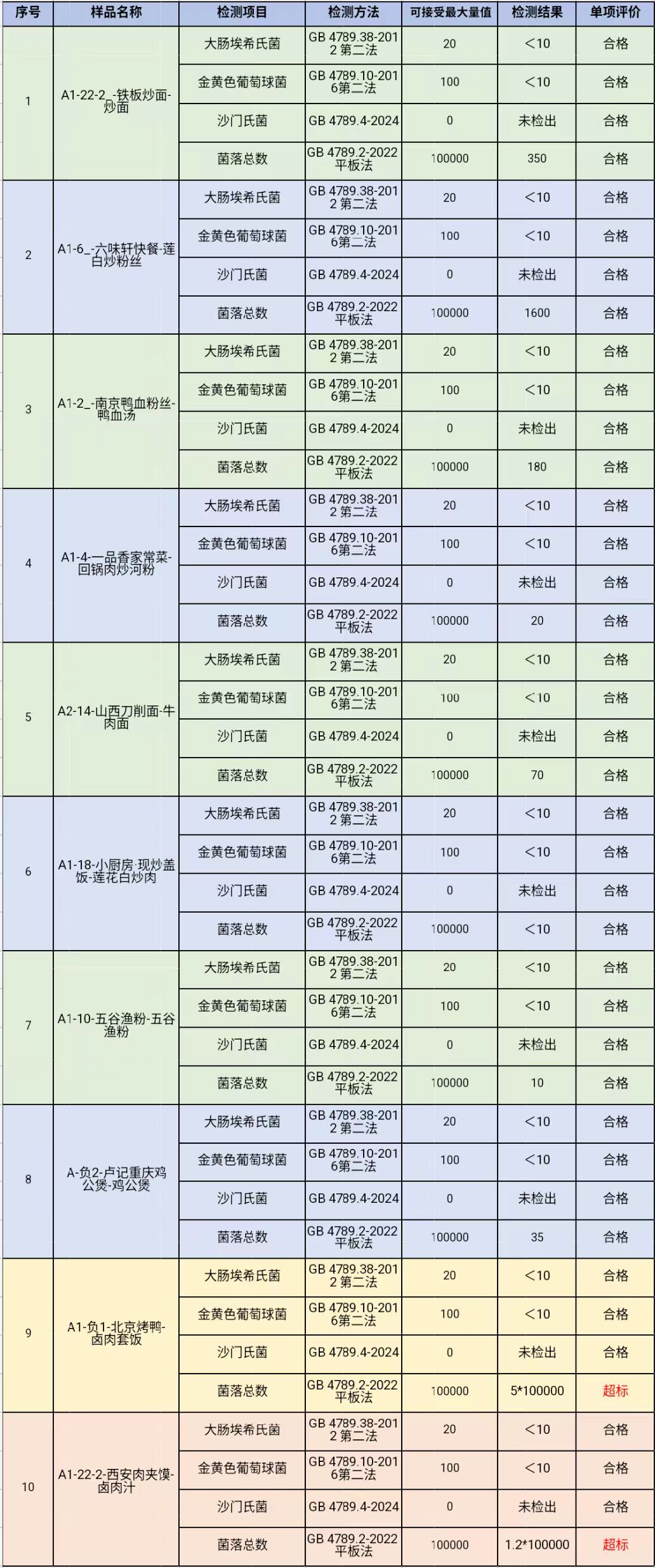 注:此次抽检结果仅针对当次样品,不代表商户的整体食品质量。