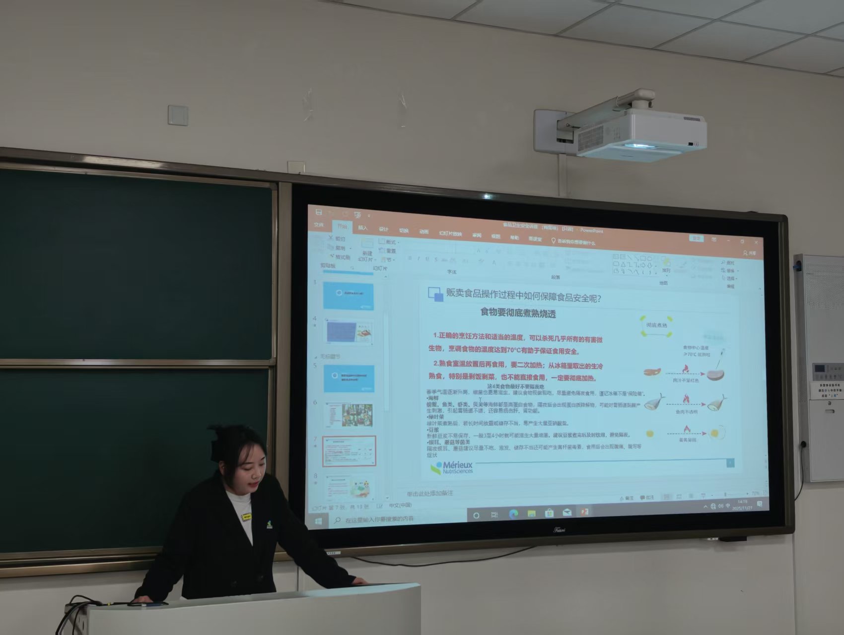 为全力保障广大师生的饮食安全,进一步巩固校园BOT商区食品安全成果,国有资产与实验室管理处于11月21日下午,邀请中安检测的雷老师,组织BOT商区部分餐饮商户开展了一场食品安全培训讲座。