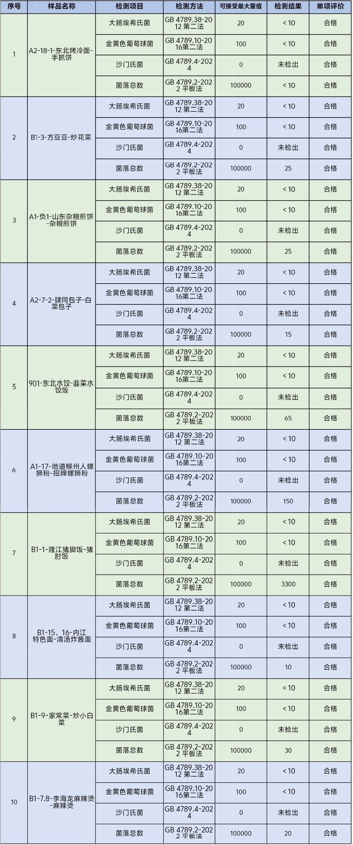 注:此次抽检结果仅针对当次样品,不代表商户的整体食品质量。