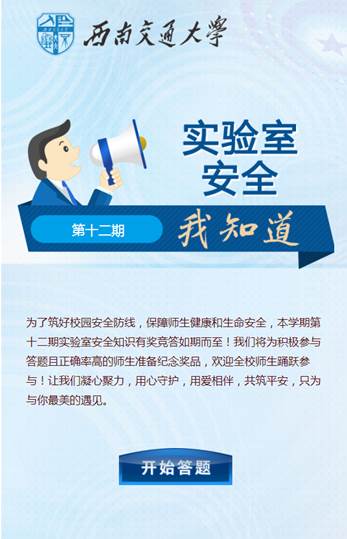 为增强师生实验室安全意识,筑牢实验室安全防线,按照2025年“实验室+”安全教育活动方案,国有资产与实验室管理处于10月启动了秋季学期安全知识有奖竞答。每周持续推出一期实验室安全知识竞答,本学期总共12期,全校参与答题的师生达13500人次。