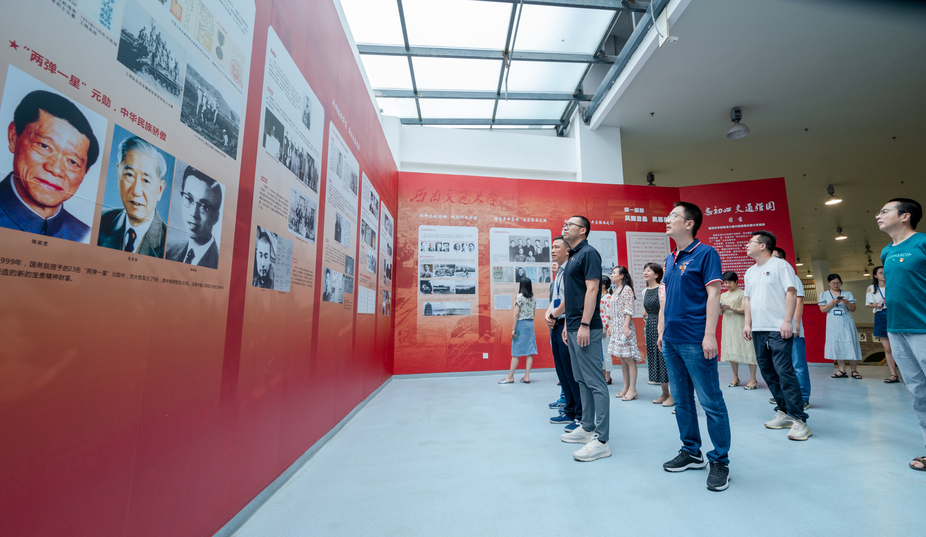 宣誓结束后,党员同志们参观了“不忘初心,交通强国”红色主题展览。贺剑书记强调必须把党的历史、学校的历史学习好,把宝贵经验传承好,“不忘初心、牢记使命”,要从历史中汲取前进力量。我校自建校以来,就有着深厚的红色基因和优良革命传统,一代代交大人将自身的命运前途、学校民族的命运前途紧密相连,走出了一条爱国、救国、报国、强国之路,希望全体党员干部传承红色基因,赓续红色血脉。