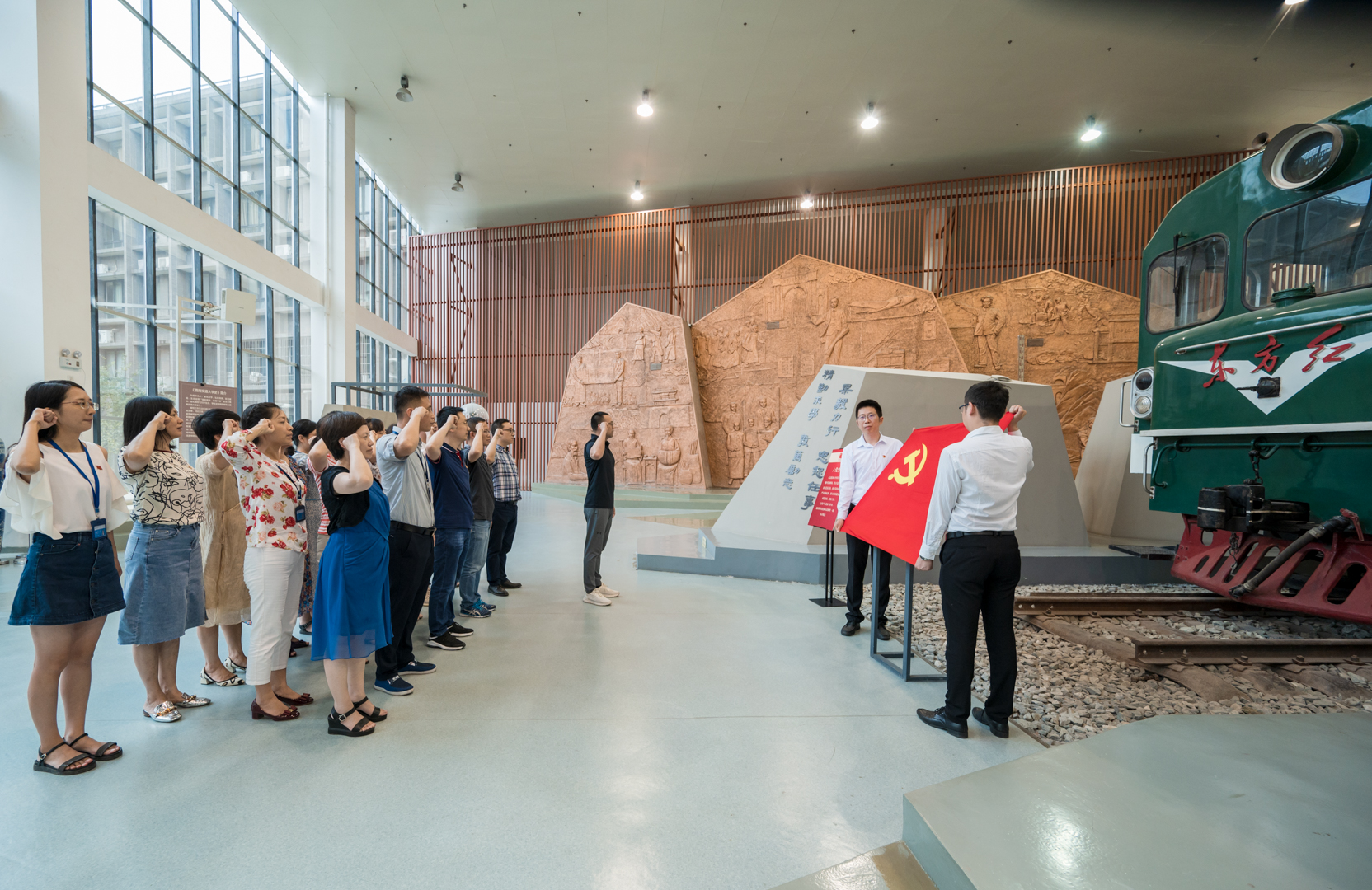 贺剑书记带领全处党员同志们面向党旗,共同重温入党誓词。“我志愿加入中国共产党,拥护党的纲领,遵守党的章程,履行党员义务,执行党的决定,严守党的纪律,保守党的秘密,对党忠诚,积极工作,为共产主义奋斗终身,随时准备为党和人民牺牲一切,永不叛党。”宣誓环节,党员同志庄严肃穆,宣誓声久久回荡在校史馆大厅。