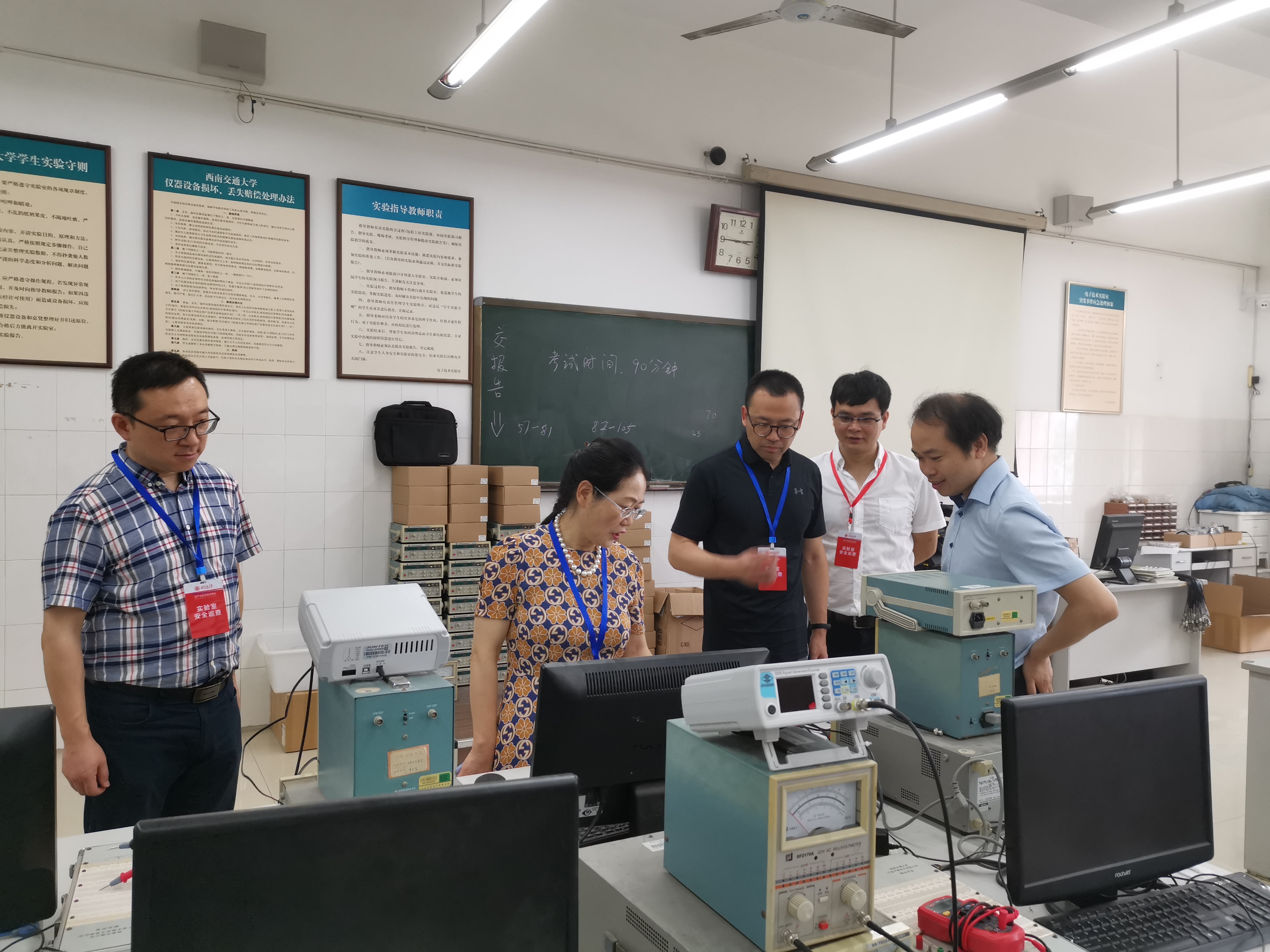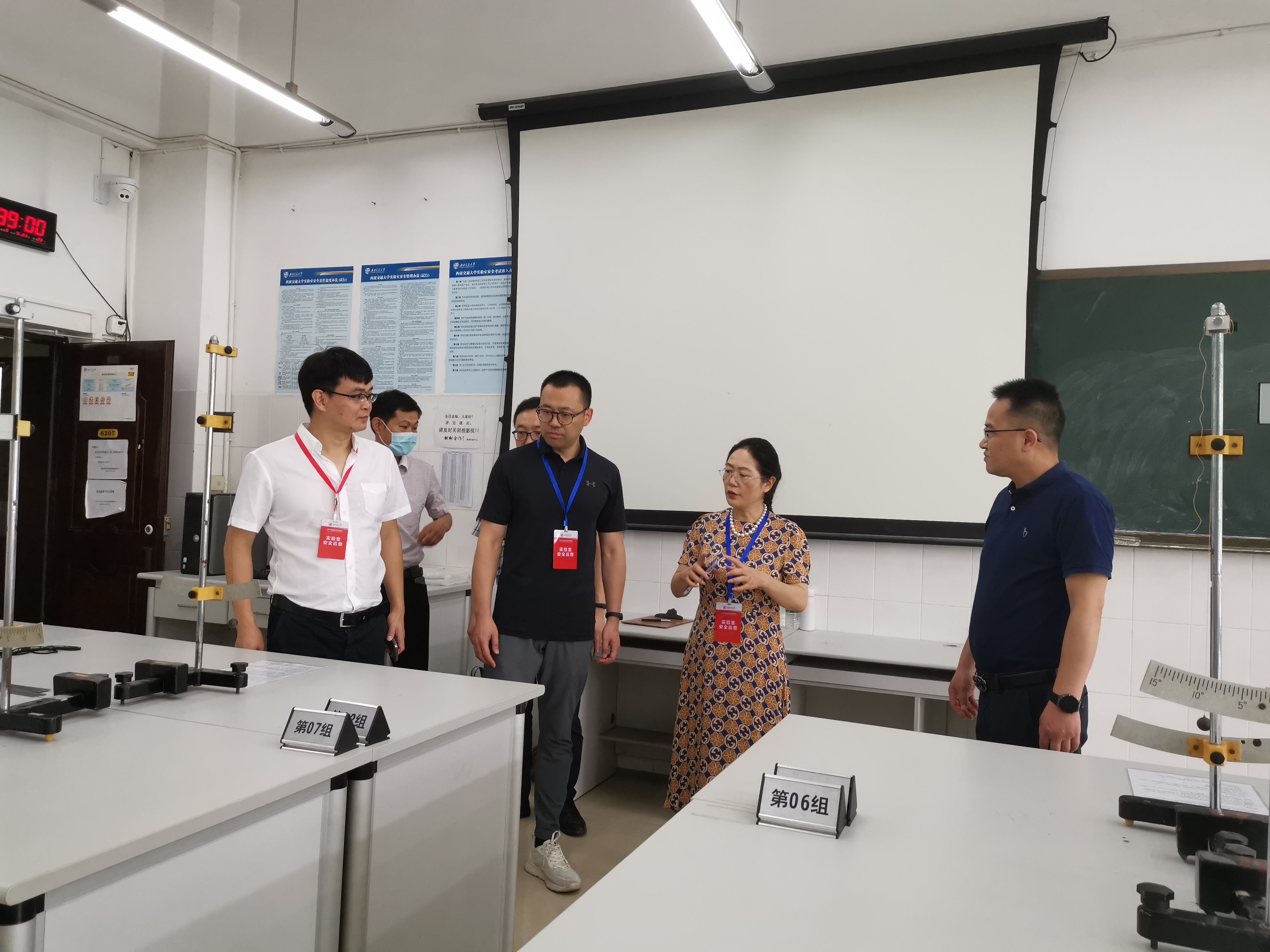 6月30日上午,检查组由朱建梅副校长带队,深入犀浦校区6号教学楼电气学院、物理学院、信息学院、生命学院等4个学院20多个教学、科研及学生科创竞赛类实验室,重点检查涉及特种设备、高压气体、危险化学品等高风险实验室,并对2021年5月19日教育部实验室安全现场检查发现问题已整改的实验室进行回访。