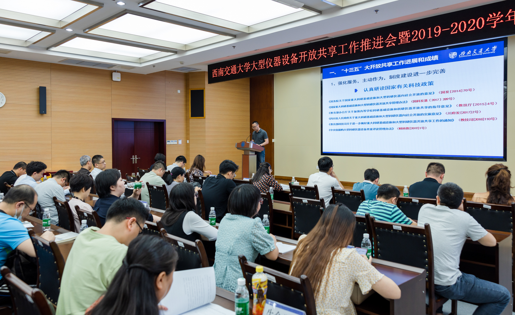 夯实大仪“新基建”,托起发展高质量。6月18日下午,西南交通大学召开大型仪器设备开放共享工作推进会暨2019—2020学年先进表彰会,朱健梅副校长出席会议,资产与实验室管理处、科学发展研究院、党委组织部(人才工作办公室)、战略与学科处、研究生院、人事处、计划财务处、信息化与网络管理处单位负责人,各教学科研单位负责人、分管大型仪器设备开放共享工作领导,2019-2020年大型仪器设备开放共享工作先进集体代表、优秀机组代表以及优秀个人参会。会议由资产与实验室管理处副处长卫飞飞主持。