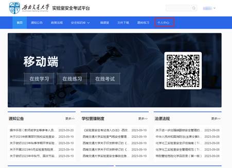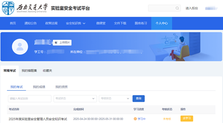 (一)电脑端登录网址:https://lses.swjtu.edu.cn/,登录方式为使用学校统一身份认证账号登录(初始密码为身份证号的第12-17位),选择“个人中心”,参加在线学习和考试,考试通过后可下载证书。