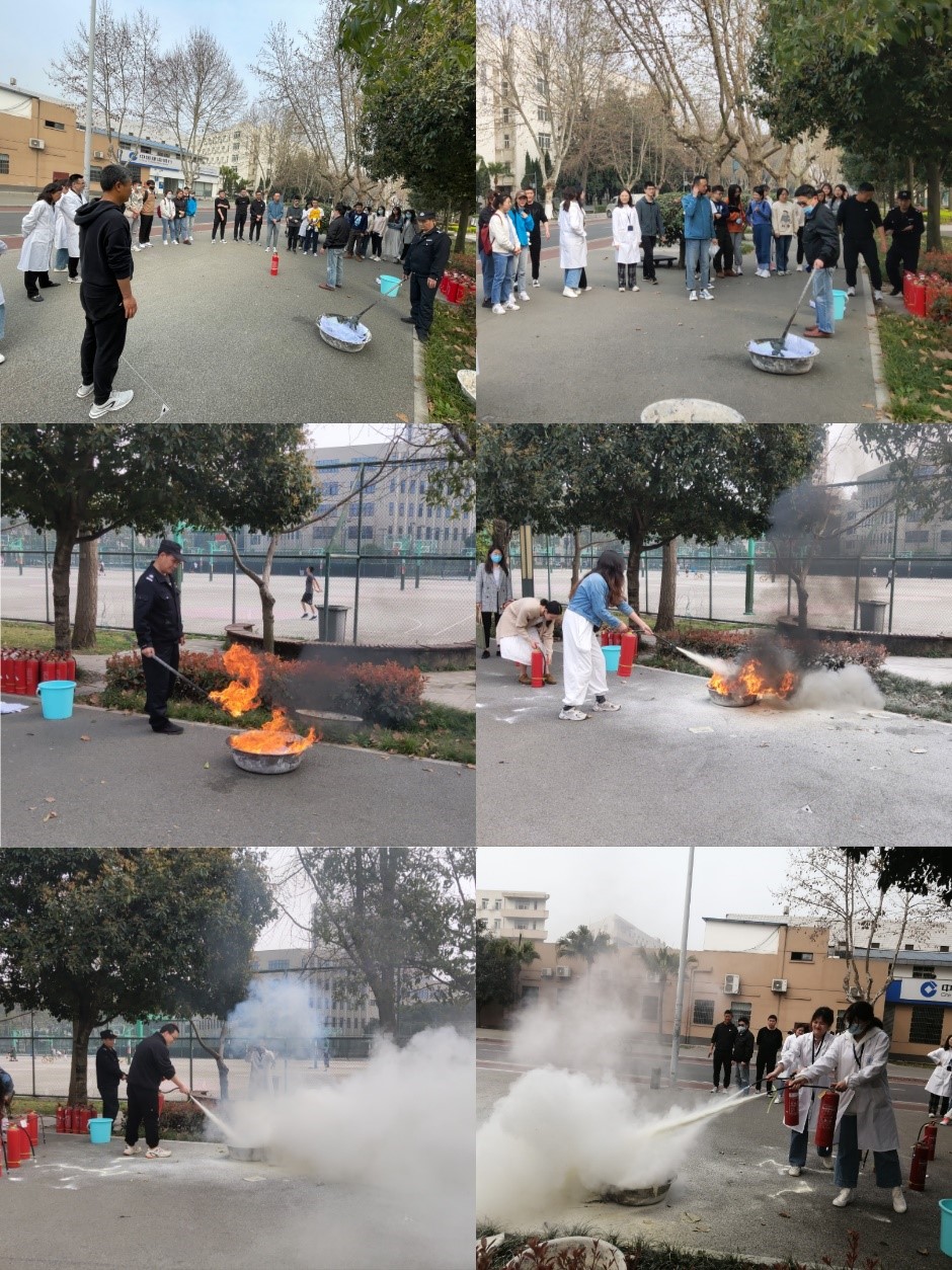 活动的第二阶段是保卫处老师为大家演示灭火的正确方法,介绍常见灭火器的特点和使用对象;倡议师生在平时要做好防火灭火的措施。最后在保卫处老师的指导下同学们有序练习使用灭火器灭火操作,让参加本次活动的师生获益匪浅。
