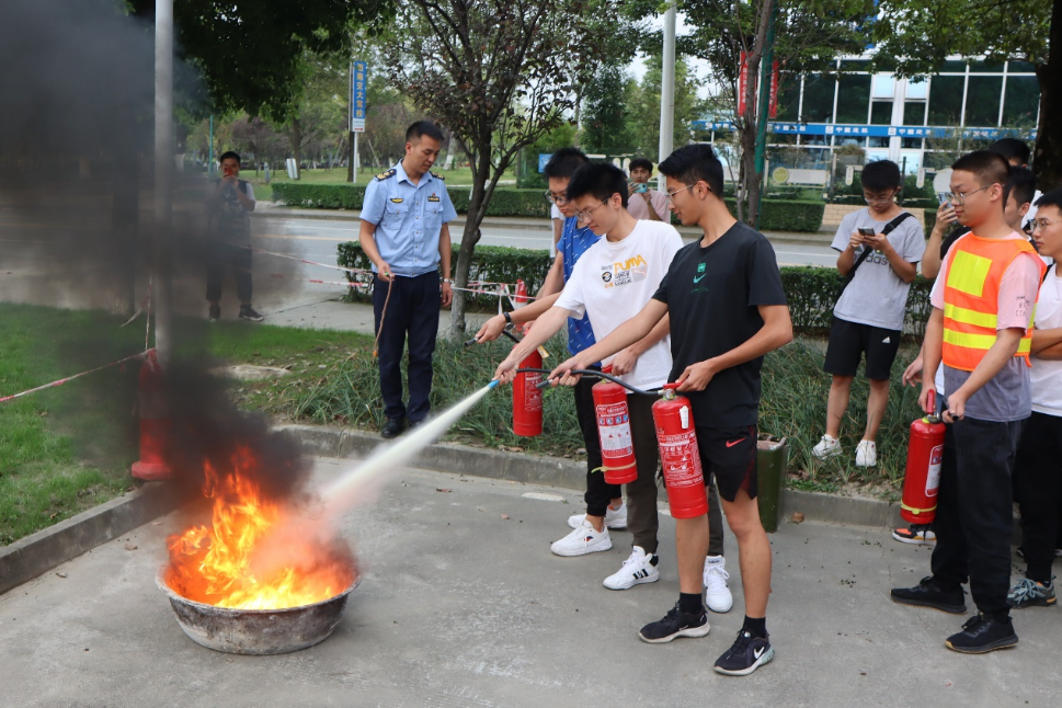 最后,在曾教官专业指导下,新生们四人一组练习使用灭火器灭火,在实践中学习救灾方法。下午六时,新生实验室安全教育讲座暨消防应急演练活动圆满结束。