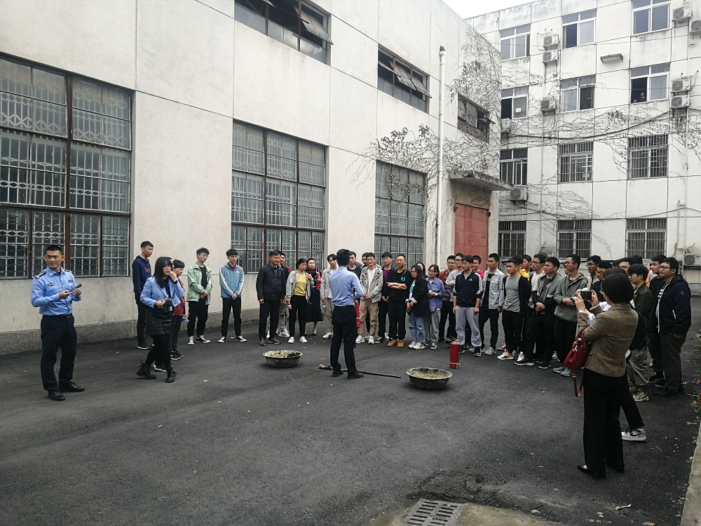 活动的最后阶段是消防灭火演练。在摩擦学研究所旁边空地上,教官指导师生使用灭火器扑灭火盆中的火焰。