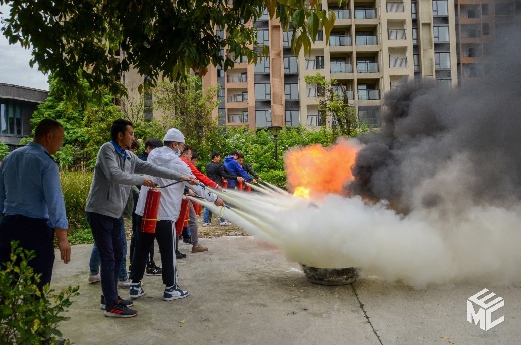 活动第二阶段是应急演练,包括紧急疏散及灭火演练。首先由党政办孟新智副主任下达消防疏散演练的统一指令后,师生弯腰扶楼梯从8层会议室往下疏散至电气学院大门外,每层楼均有志愿者进行疏散引导。随后,师生在电气馆外空地集合并开展消防灭火演练。在何教官的指导下,同学们练习使用灭火器扑灭火盆里的火焰。至此,本次活动圆满结束。