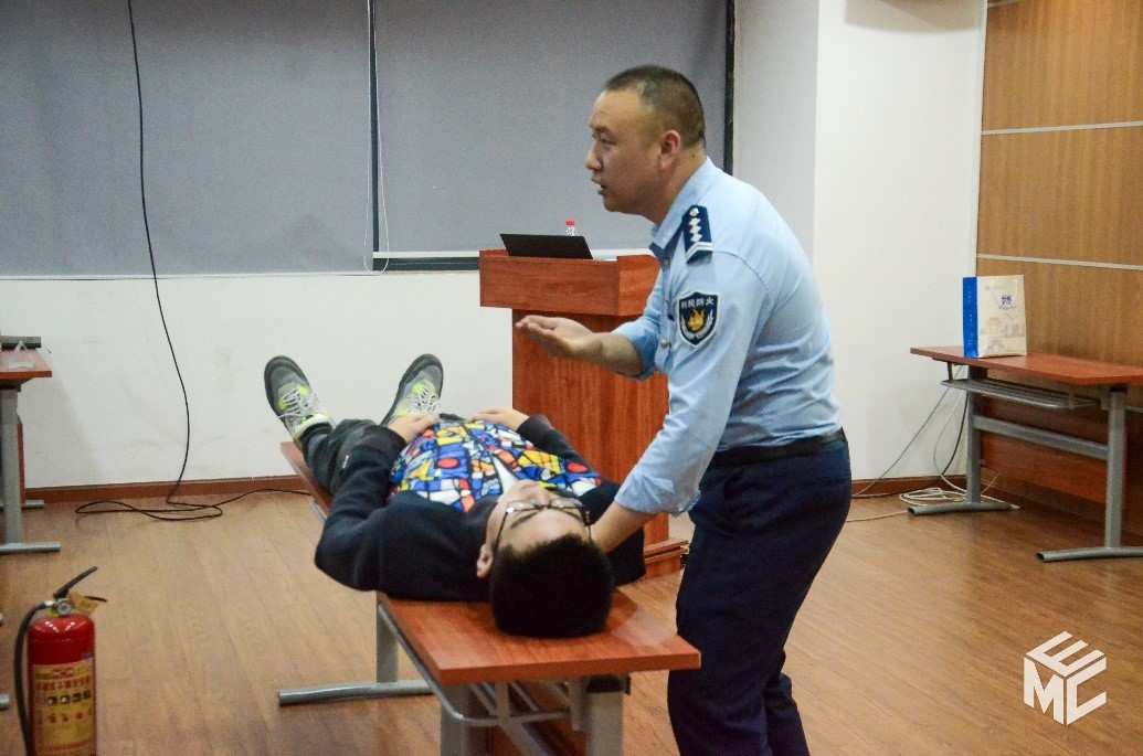 随后,成都市利民消防宣传中心何文平教官为师生开展实验室消防安全及心肺复苏培训。何教官通过播放视频案例强调消防安全的重要性,列举实验室常见的安全隐患,如配套设施陈旧,线路老化;乱设防护门窗,阻塞安全通道等。火灾事故发生多为人为原因,忘关电源使设备通电时间过长、温度过高引起火灾;操作不慎,使火源接触易燃物质引起火灾;供电线超负荷,线路发热引起火灾;乱扔烟头,点燃易燃物引起火灾。何教官邀请老师同学参与灭火器演练,生动地演示了灭火器的使用方法“提拔握压”;在讲解心肺复苏相关知识的过程中,何教官邀请同学上台学习,让同学们印象深刻。最后何教官告诫师生:“安全无小事。”希望大家都能够提高消防意识、注意消防安全。