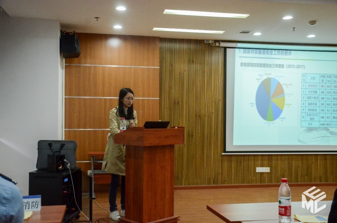 接着,资产与实验室管理处赵春花老师为师生介绍学校实验室安全管理相关知识。赵老师从“国家对实验室安全工作的要求”、“我校实验室安全管理工作”、“我校实验室安全教育宣传活动”三个方面进行讲解,重点介绍了教育部检查指标、危险化学品及特种设备的管理。最后,她还介绍了我校2021年“实验室+”安全教育宣传系列活动,呼吁师生能够积极参加,携手共建和谐平安校园。