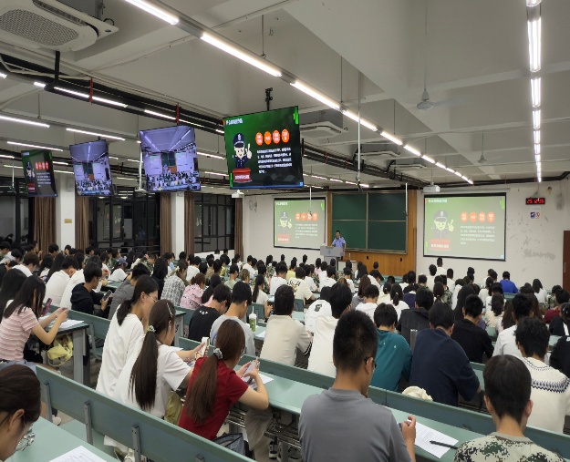 9月11日,学院在X4350、X4352教室为417名本科新生开展了安全专题讲座。派出所陈柯君警官开展反诈宣传,通过讲解电信诈骗、刷单诈骗等多种常见诈骗类型及案例,提升新生反诈能力;保卫处曾轲老师围绕校园安全,介绍紧急疏散、消防安全等知识,以生动案例警示学生重视安全;实验中心王利华主任进行实验室安全培训,强调实验室安全重要性,提出安全要求,明确学生必须通过安全考试后方可进入实验室。