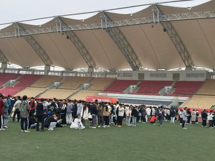 在疏散过程中,校保安队员、志愿者与工作人员协同合作,分布在疏散路线上,耐心指导并维护秩序。楼内的学生在短短20分钟内完成了撤离,并按照预案指引安全集结至犀浦北区体育场。