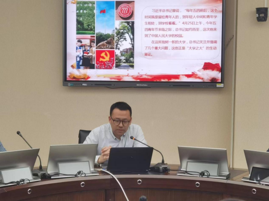 4月28日,资实处党支部在犀浦校区综合楼269会议室,专题学习习近平总书记在中国人民大学考察时的重要讲话精神。资实处党支部书记贺剑同志主持会议并领学,全体党员、职工参加学习。