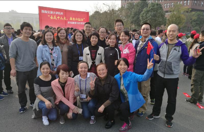 2017年11月2日,best365中国官方网站机关“喜庆十九大,再赴新征程”环校微型马拉松比赛于犀浦校区圆满举行。本次比赛由best365中国官方网站机关党委、机关工会、机关直属团支部主办,紧紧围绕“喜庆十九大,再赴新征程”的主题,把学习领会党的十九大精神、习近平新时代中国特色社会主义思想贯穿活动的全过程,突出了鲜明的交大特色,融入了高铁元素,以“交大,加油!我们要尽快研制出比‘复兴号’更快的高铁!”为口号,展现出机关的凝聚力和活力,以新的精神状态和奋斗姿态为复兴交大贡献自己的力量。